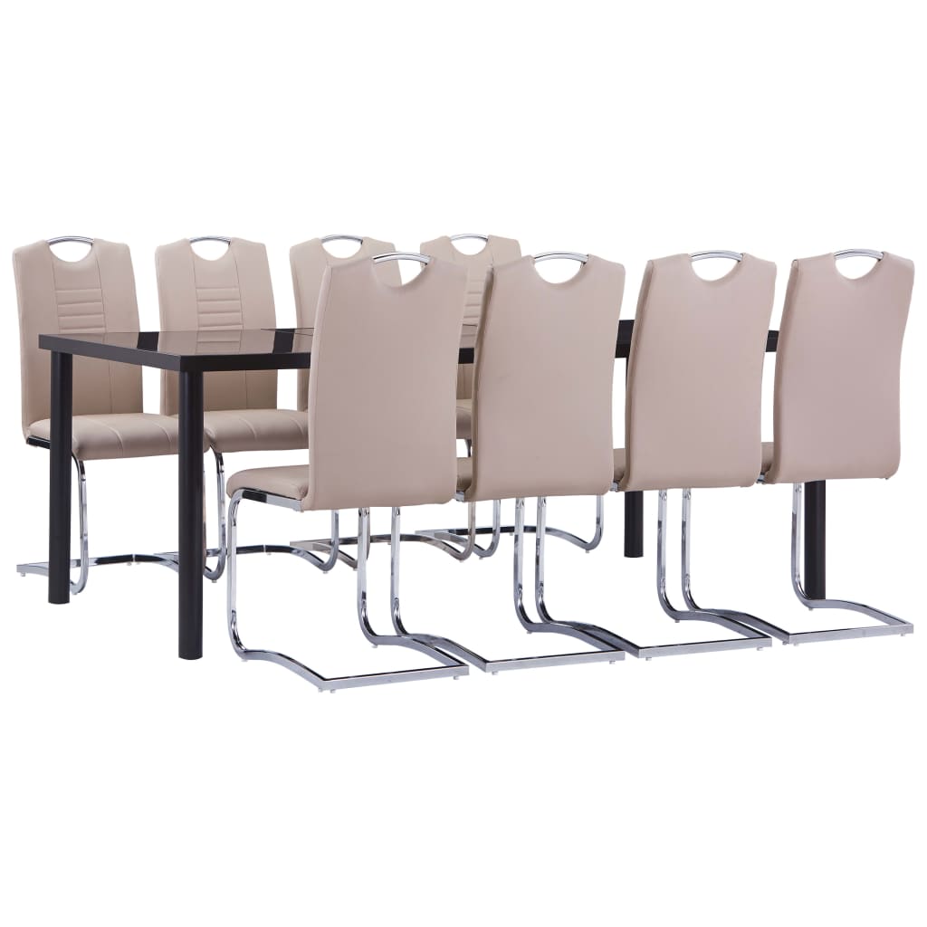 Stůl má hladkou stolní desku z tvrzeného skla, kterou snadno očistíte vlhkým hadříkem. Práškově lakovaný kovový rám přispívá k robustní konstrukci a zaručuje jeho výtečnou stabilitu a odolnost. Židle jsou čalouněné měkkou umělou kůží a silně polstrované, takže vám poskytnou maximální pohodlí. Sedáky mají ergonomický design, abyste se na nich mohli příjemně uvelebit. Židle mají chromovaný ocelový rám, což jim zajišťuje mimořádnou robustnost a stabilitu. Na opěradle navíc najdete praktickou rukojeť, aby se vám lépe přenášely. Montáž jídelní sestavy je jednoduchá.