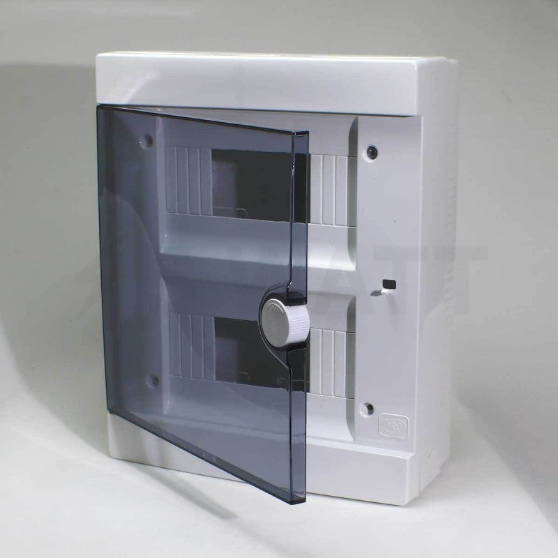 ARS Modulární rozváděč 16 MOD (16 pojistek), rozvodná skříň pro povrchovou montáž, plastová, průhledná dvířka IP40, 341205