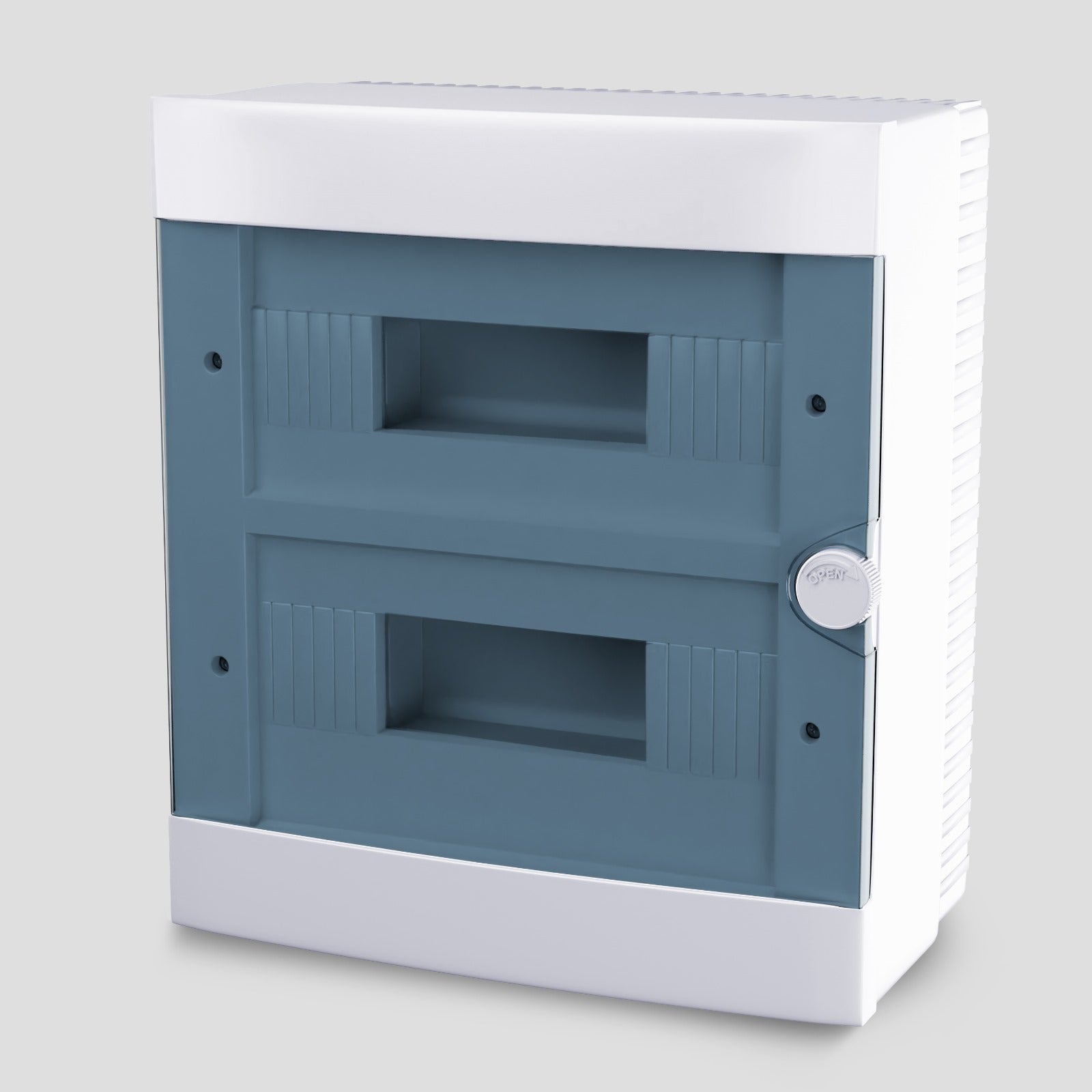 Plastová skříň se skládá z 2 řady po 12 modulech.