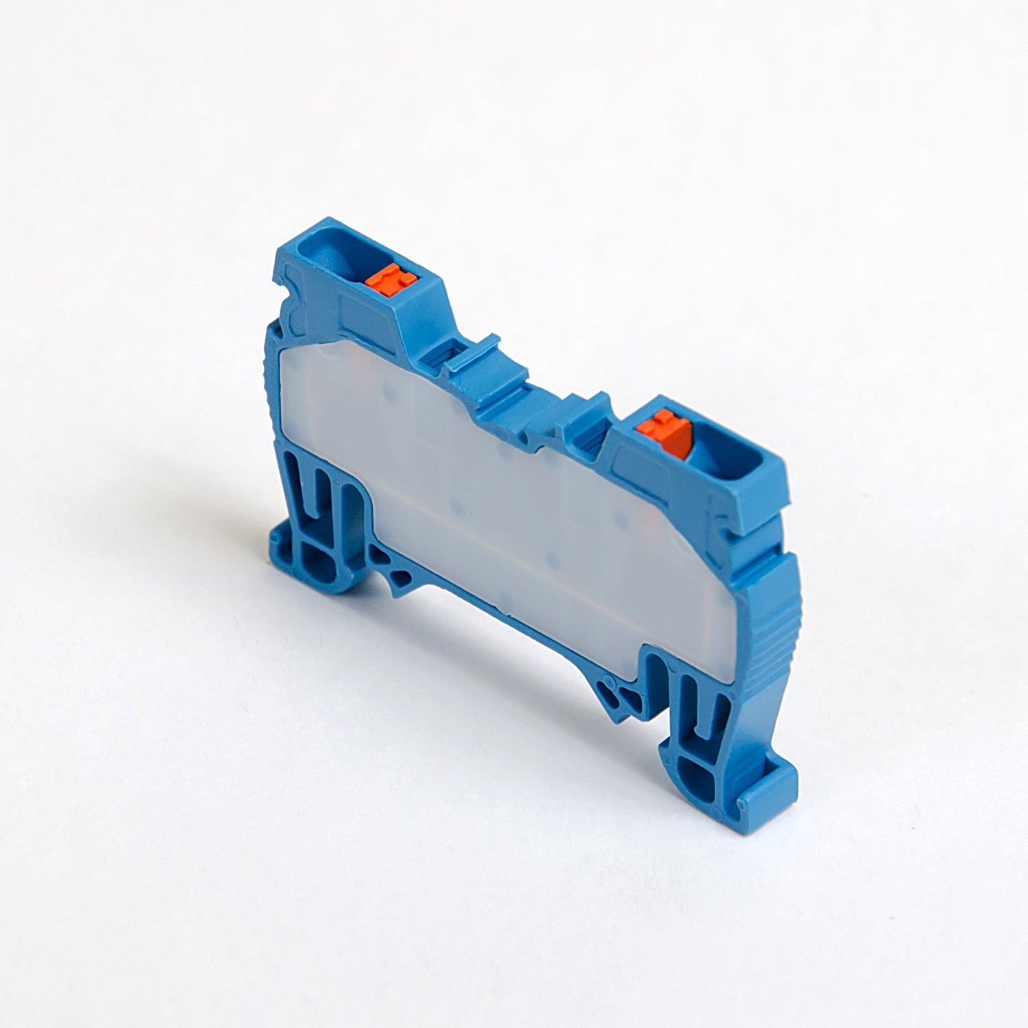 Pružinová přípojnice kolejnicová spojka / Terminál na DIN lištu 2-vodičová, zasouvací kontakt, modrá, ONKA, vyrobeno v Turecku.