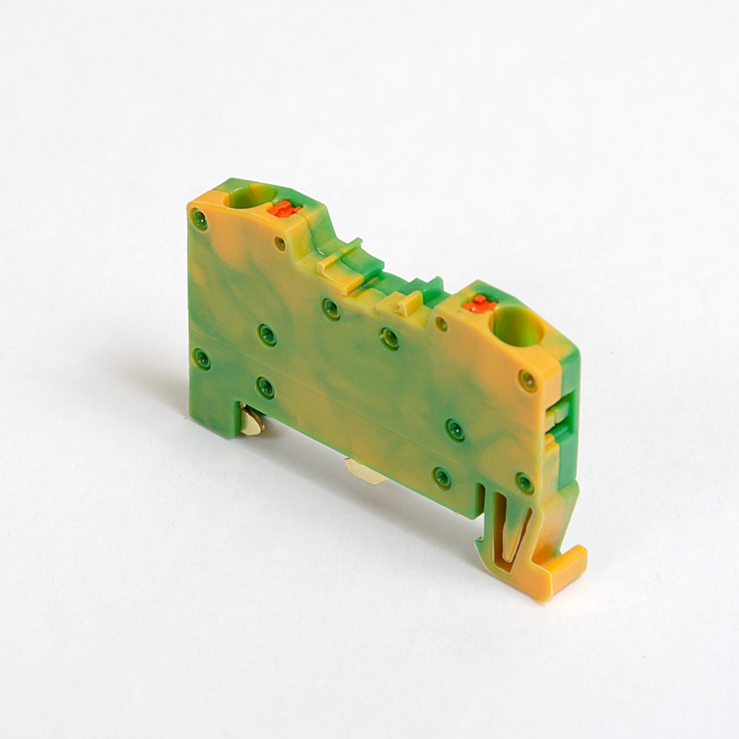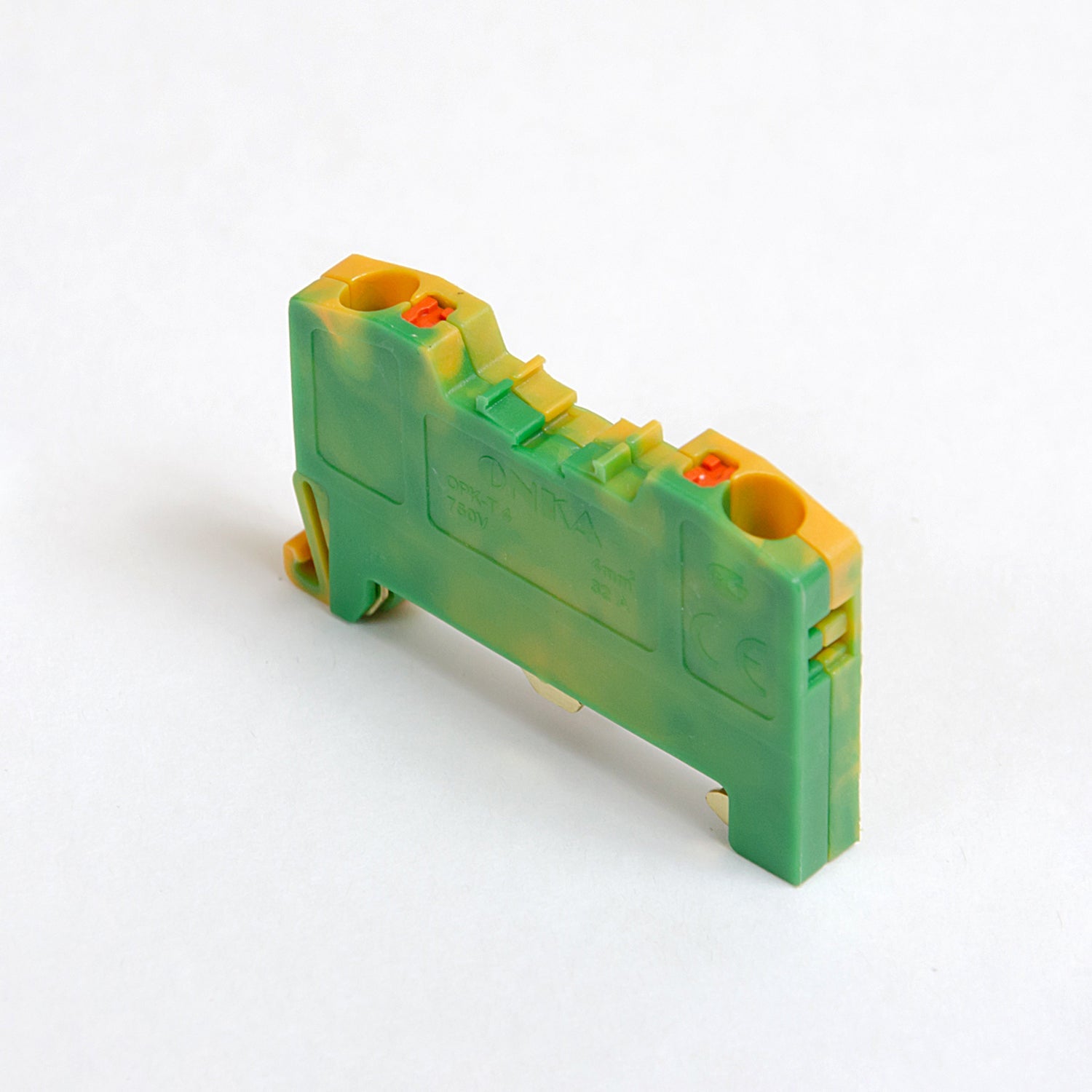 PE pružinová přípojnice kolejnicová spojka / Terminál na DIN lištu 2-vodičová zeleno-žlutá, ONKA, vyrobeno v Turecku