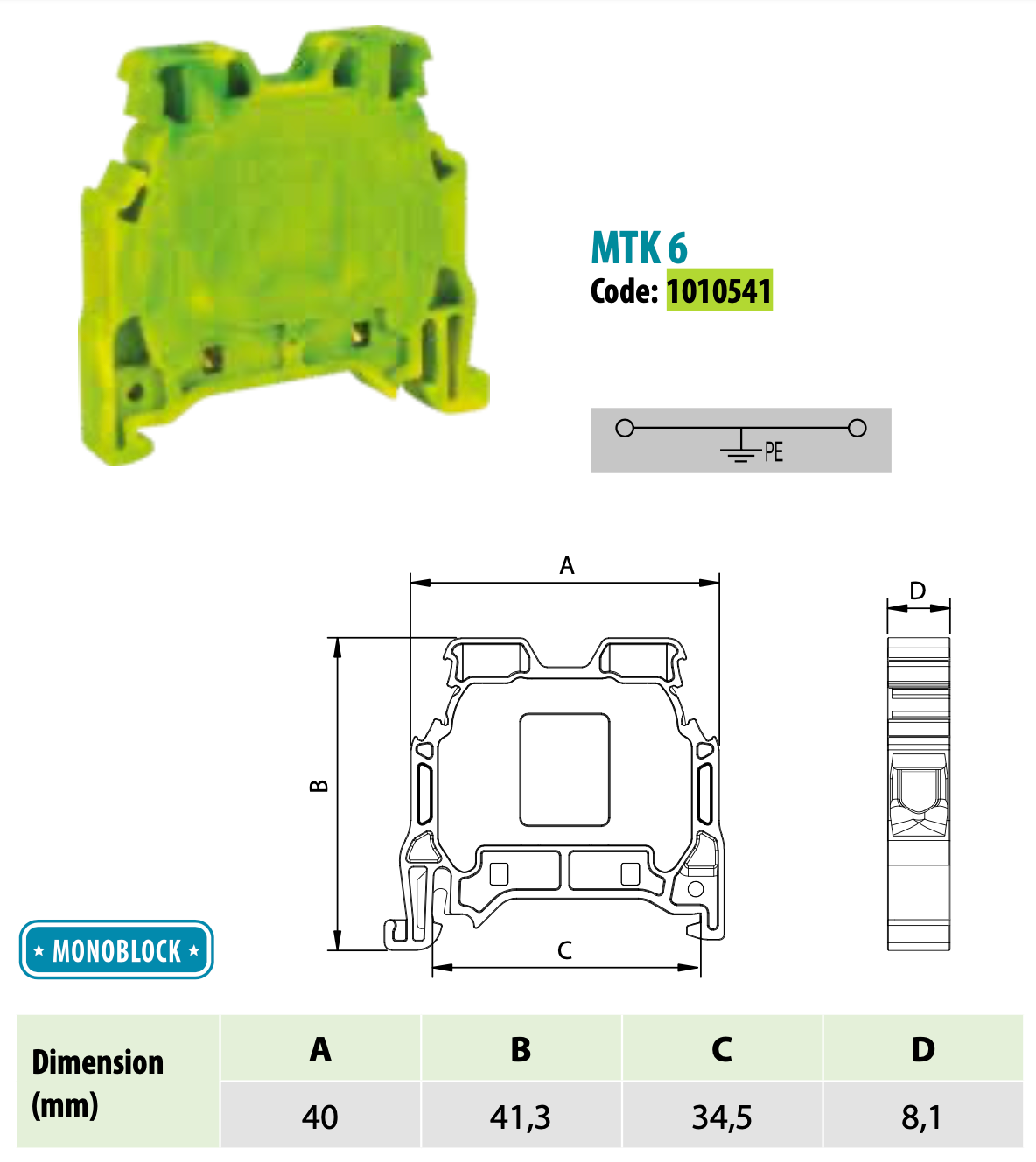 ONKA 6mm2 PE Šroubová kolejnicová spojka svorkovnice terminál na DIN lištu 2-vodičová šedá, 1010541