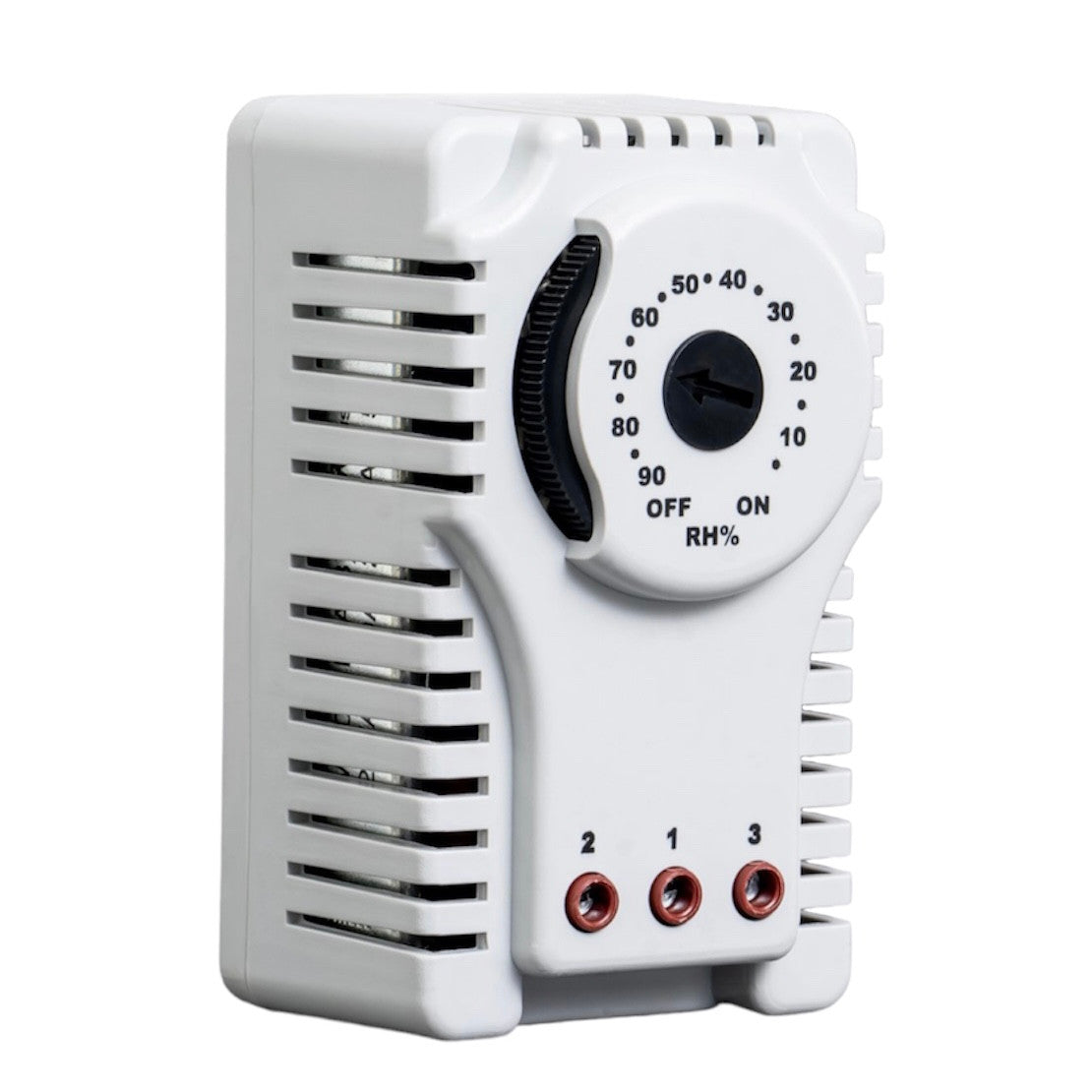 PLASTIM PHG02 hygrostat 110-250VAC (10А-5A proudové zatížení), 10 - 90%RH, šroubové svorky IP20