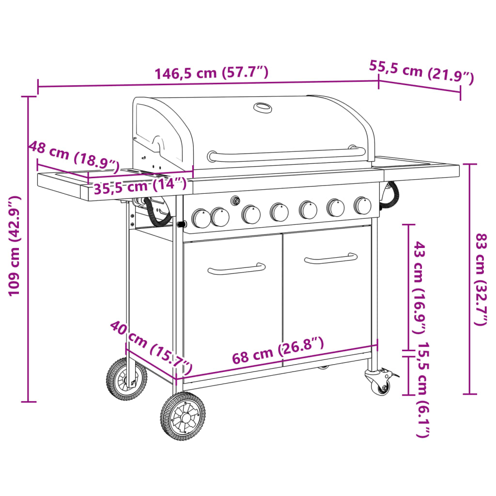 Plynový gril se 7 hořáky černý ocel s práškovým nástřikem