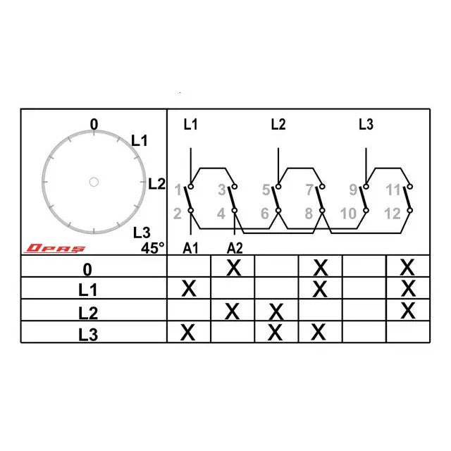 Voltmetrový spínač 0-L1N-L2N-L3N – otočný vačkový paketový spínač VOLTMETR, YET3V2M, OPAŞ (Turecko)