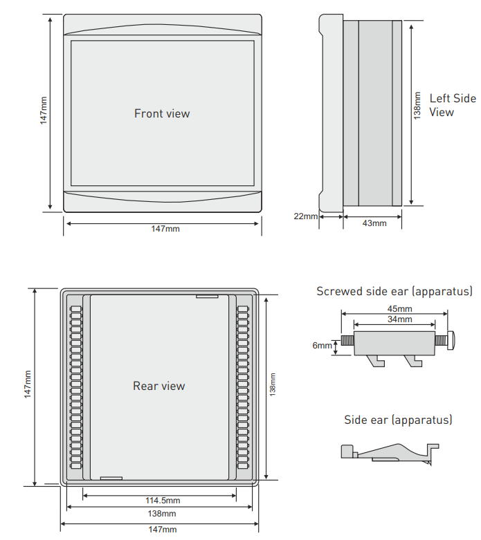 Třída ochrany: IP41 (přední panel), IP20 (pouzdro)