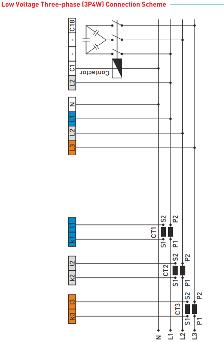 Pokud ze sítě pochází indukční jalová energie, regulátor připojuje kondenzátory.