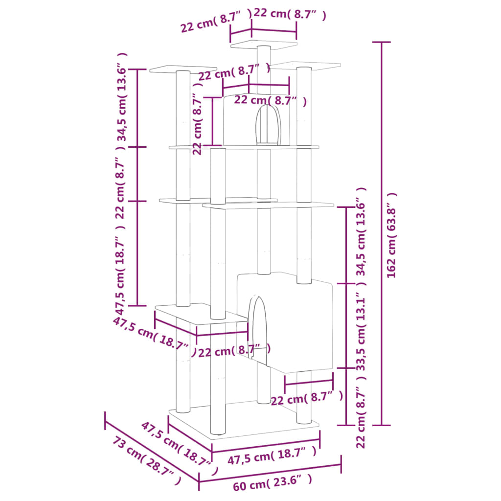 Škrabadlo pro kočky se sisalovými sloupky tmavě šedé 162 cm
