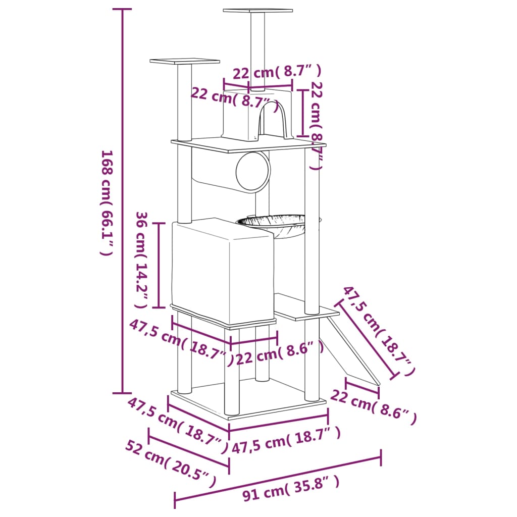 Škrabadlo pro kočky se sisalovými sloupky světle šedé 168 cm