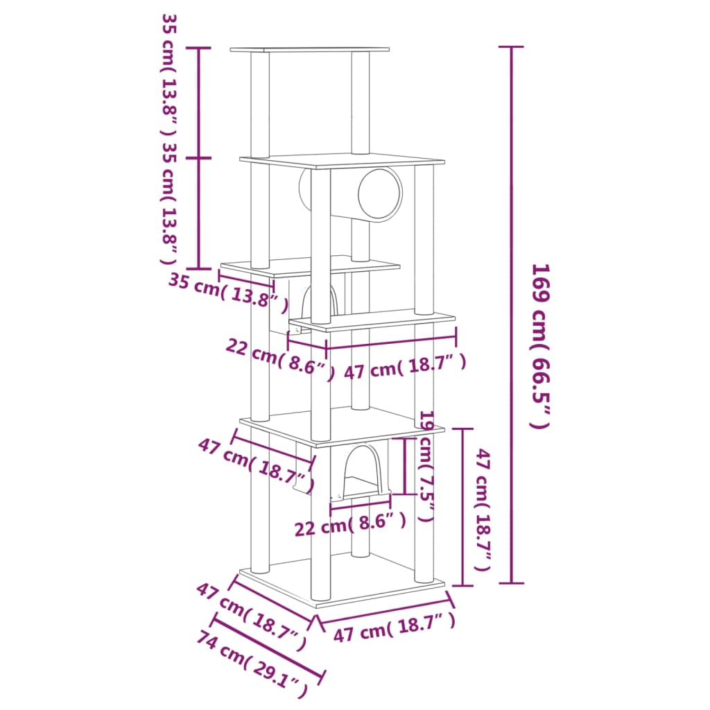 - Všestranná věž pro kočky: Víceúrovňový nábytek pro kočky je navržen se 2 domečky, 1 tunelem a plošinami, které poskytují kočkám ideální místo pro šplhání, sezení, škrábání, schovávání se a také k odpočinku.