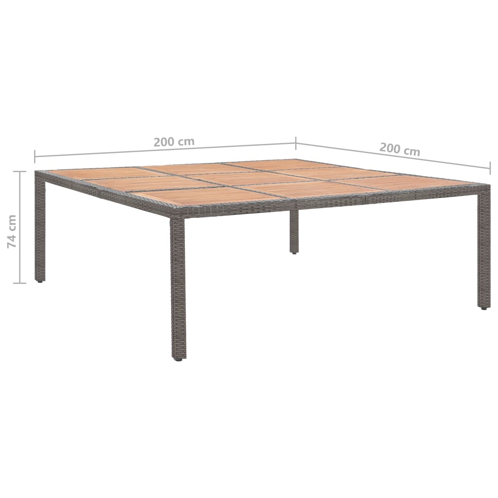 Zahradní stůl šedý 200x150x74 cm polyratan a akáciové dřevo